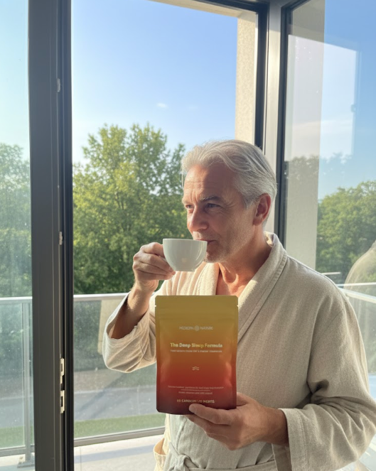 Je wordt wakker met energie in plaats van vermoeidheid. Je merkt het verschil in focus, stemming, herstel en algehele rust in je lijf. Geen duf gevoel. Geen gewenning. Gewoon weer écht slapen — diep, stil en onafgebroken, zoals het ooit vanzelf ging.